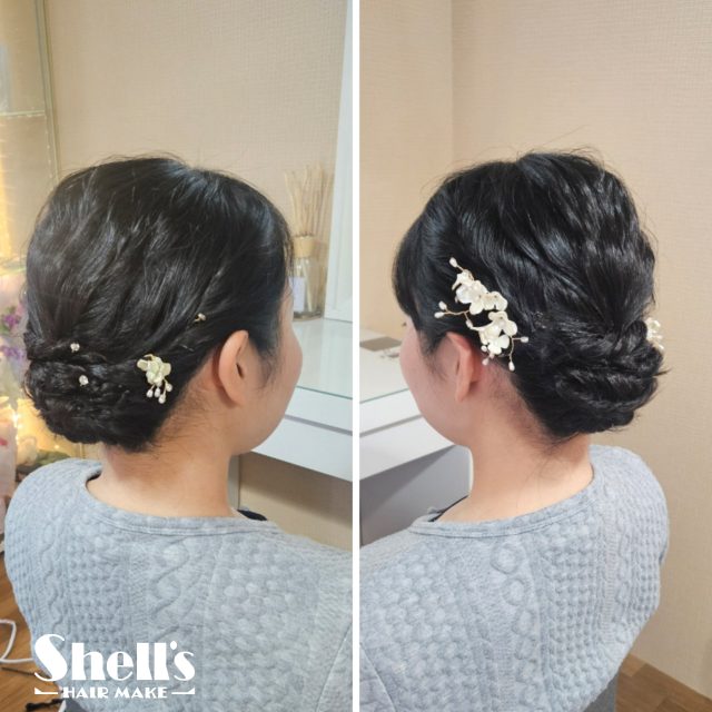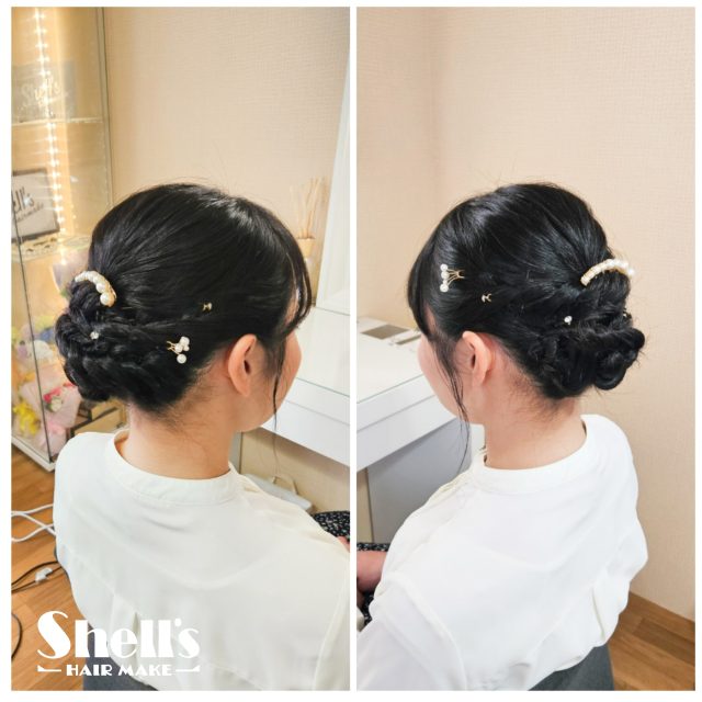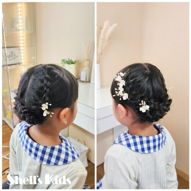 お嬢様はハーフアップをご希望でしたので、それぞれに合わせて仕上げさせていただきました。