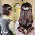 広がりやすいとのことと、あまり派手すぎない雰囲気でハーフアップをご希望でしたので、このようにさせていただきました。